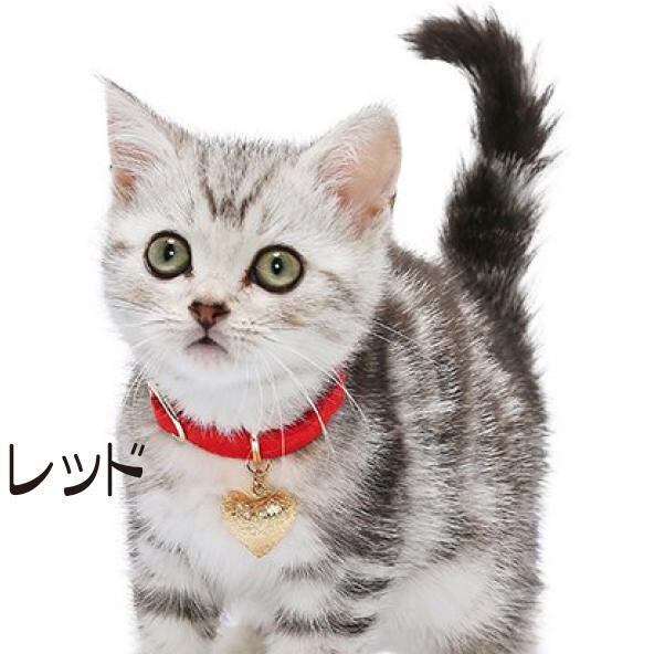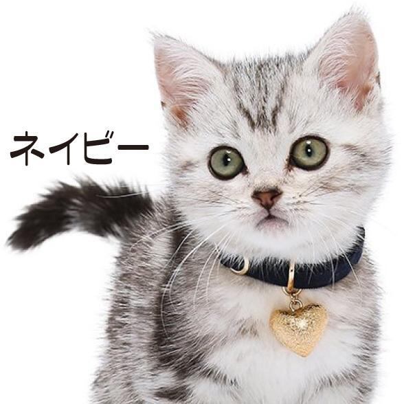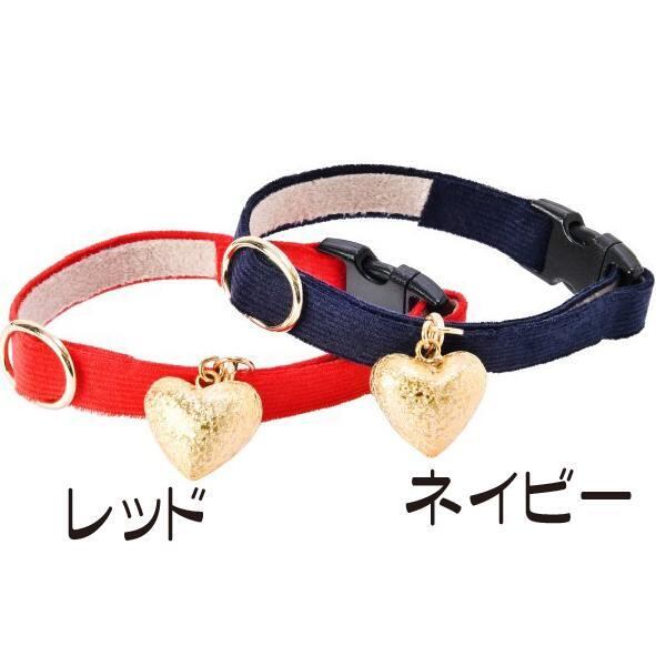 金色のハート型の鈴がポイントの猫首輪。