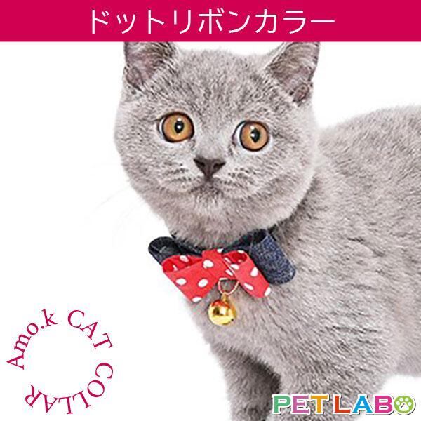 【メール便発送可能です】Amo.k(アモワークス)猫用首輪・ドットリボンカラー 首輪 胴輪 ハーネス お散歩 お出かけ お洒落 おしゃれ かわいい