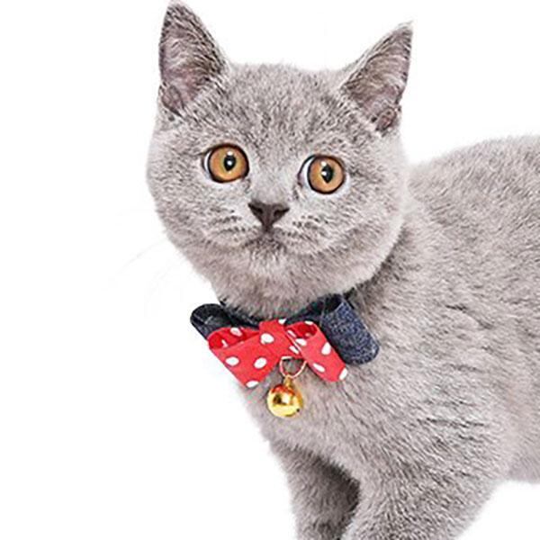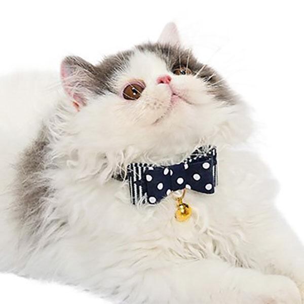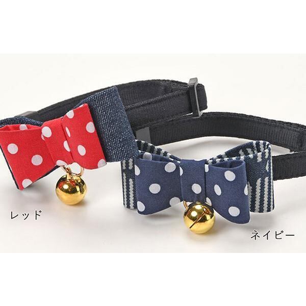 大きめドット柄の リボンがかわいい猫首輪です。