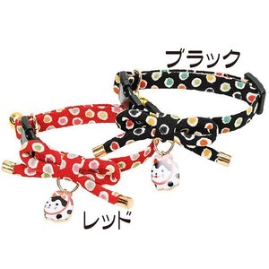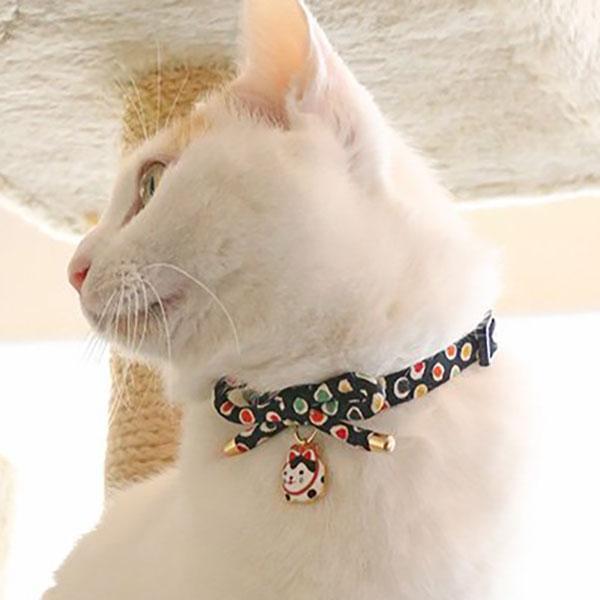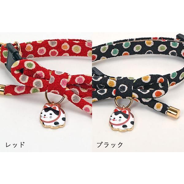水玉模様のちりめん生地が はんなり可愛い猫ちゃん用首輪です。