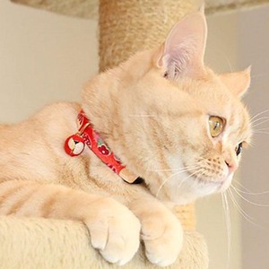 色鮮やかなちりめん金彩が和風で小粋な猫首輪。