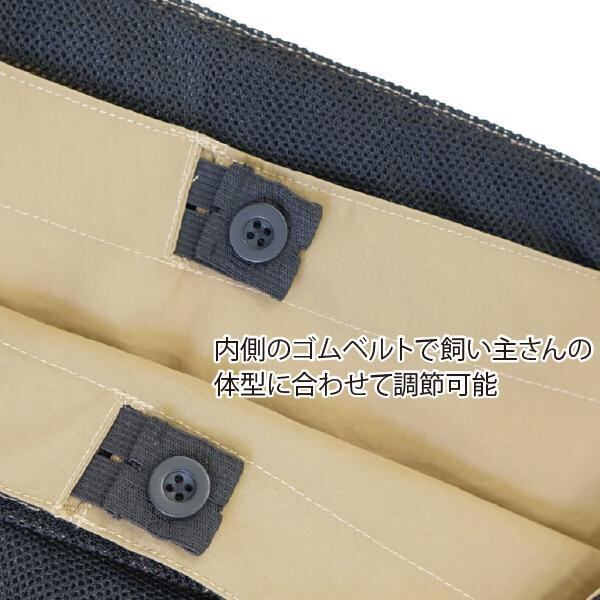 ・内側のゴムベルトで飼い主さんの体型に合わせて調節可能