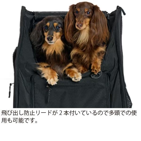 飛び出し防止リードが2本ついているので多頭での使用も可能!