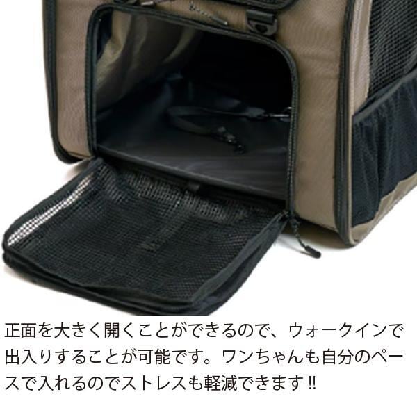 正面を大きく開くことができるので、ウォークインで出入りすることが可能。ワンちゃんも自分のペースで入れるので、ストレスフリー♪
