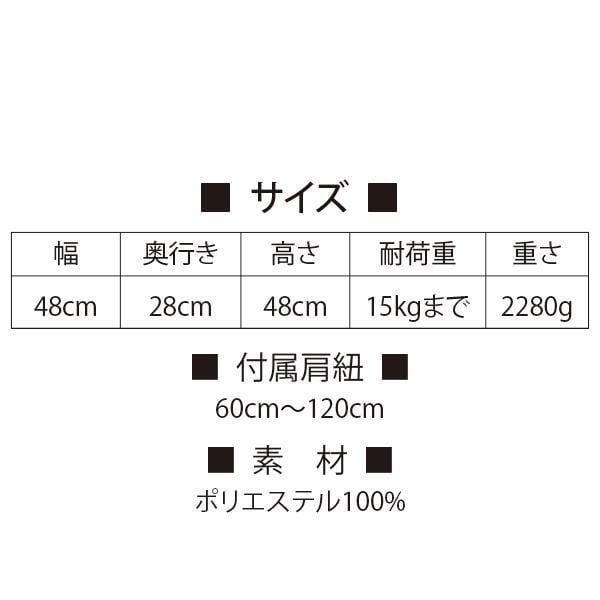 ■サイズ:幅48cm×奥行28cm×高さ48cm、付属肩紐60〜120cm