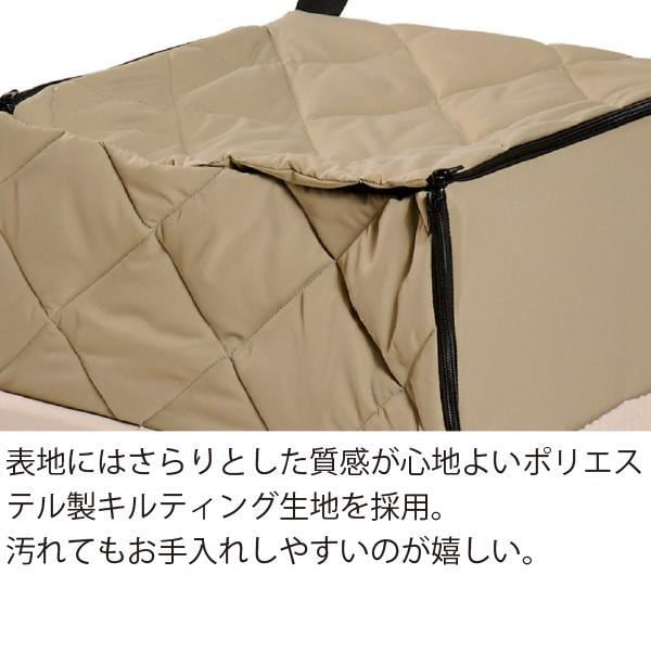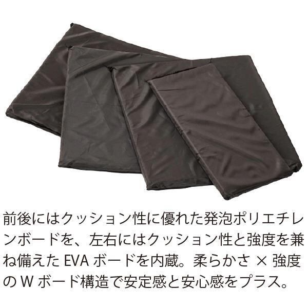 前後にはクッション性に優れた発泡ポリエチレンボードを、左右にはクッション性と強度を兼ね備えた表地には、さらりとした質感が心地よいポリエステル製キルティング生地を採用。