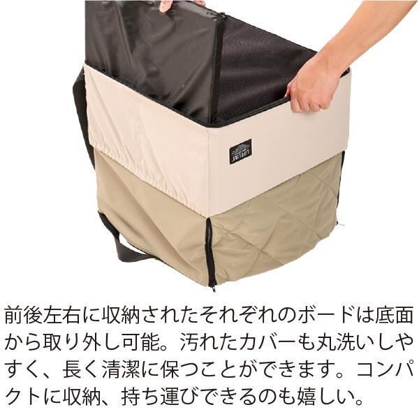 前後左右に収納されたそれぞれのボードは底面から取り外し可能。汚れたカバーも丸洗いしやすく、長<清潔に保つことができます。コンパクトに収納、持ち運びできるのも嬉しい!