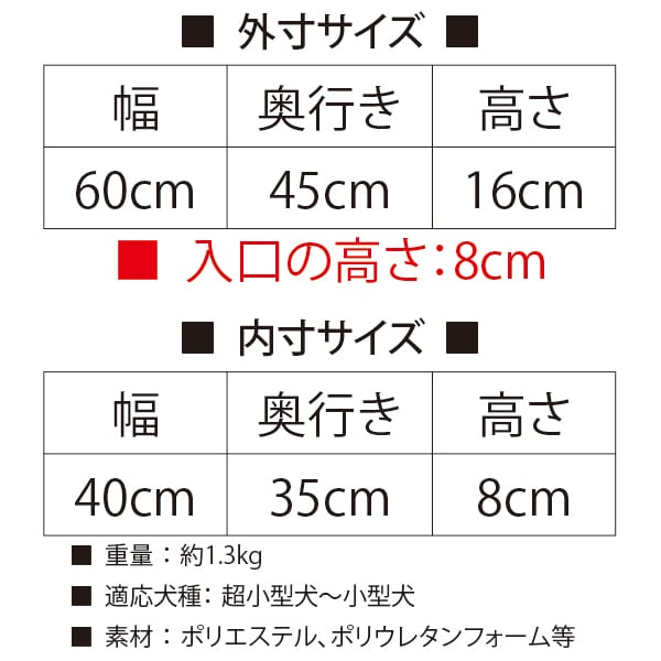 サポート力のあるあご乗せクッションを備え、愛犬が体を伸ばしてくつろぐことができる作りになっています。