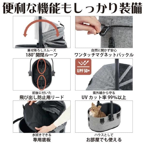 DOME3レギュラーやラージサイズだと大きすぎる、DOMEシリーズを使いたいけどもう少し軽いカートがいい、猫やうさぎなどの小型ペットを乗せたいといった方におすすめです。