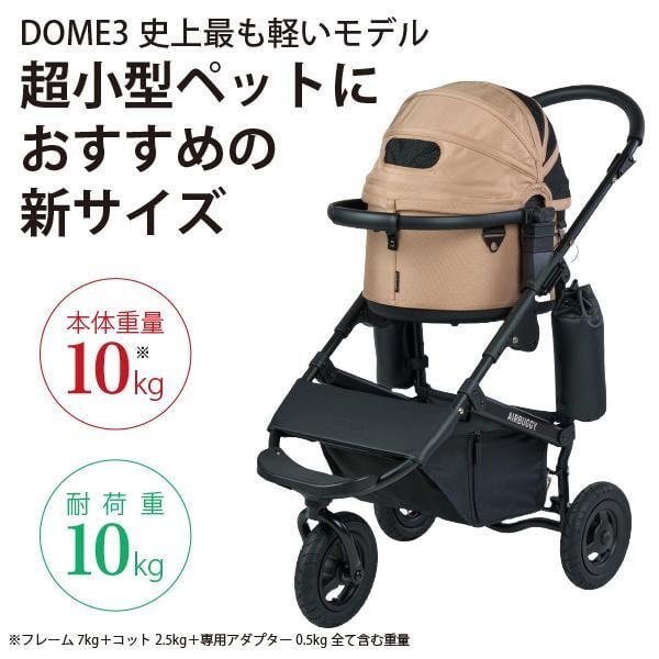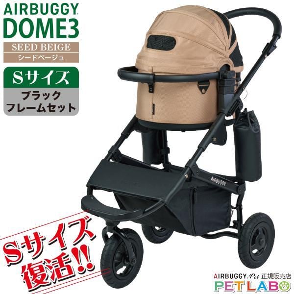 【宅配便送料区分:1】購入特典付き!! 超小型犬に!! AIRBUGGY ドーム3・Sサイズ・シードベージュ(ブラックフレーム) エアバギー 新作 スモール 耐荷重10kg フレームカラーも選べます
