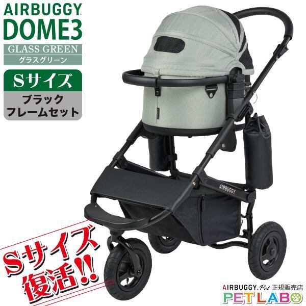 【宅配便送料区分:1】購入特典付き!! 超小型犬に!! AIRBUGGY ドーム3・Sサイズ・グラスグリーン(ブラックフレーム) エアバギー 新作 スモール 耐荷重10kg フレームカラーも選べます