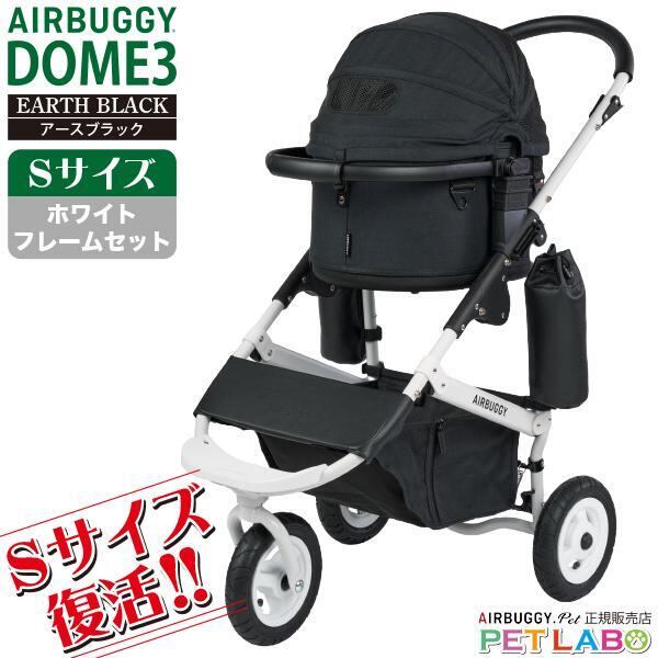 【宅配便送料区分:1】購入特典付き!! 超小型犬に!! AIRBUGGY ドーム3・Sサイズ・アースブラック(ホワイトフレーム) エアバギー 新作 スモール 耐荷重10kg フレームカラーも選べます