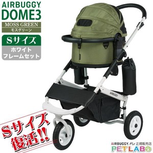 【宅配便送料区分:1】購入特典付き!! 超小型犬に!! AIRBUGGY ドーム3・Sサイズ・モスグリーン(ホワイトフレーム) エアバギー 新作 スモール 耐荷重10kg フレームカラーも選べます