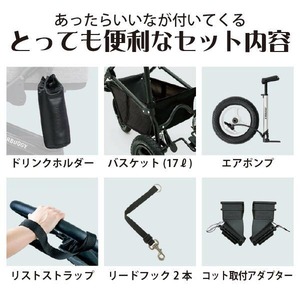 ■標準装備:コット取り付け用アダプター、エアポンプ、リストストラップ、足元バスケット(17L)、ドリンクホルダー×2、リードフック×2