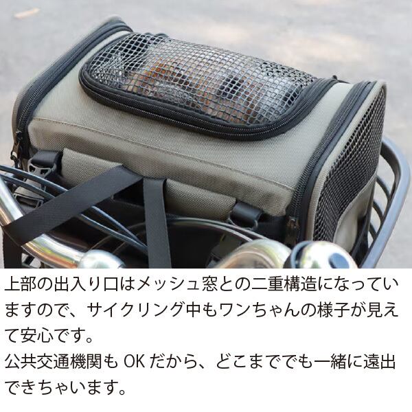 上部の出入り口はメッシュ窓との二重構造。サイクリング中もワンちゃんの様子が見えて安心です。