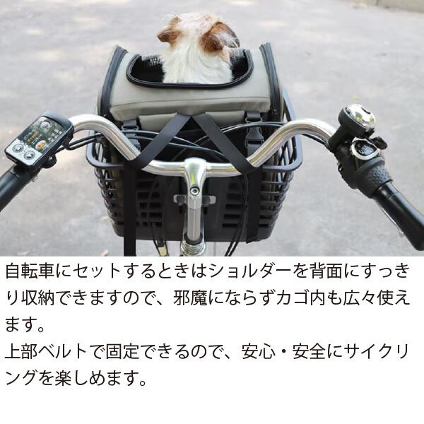 自転車での移動から公園でのお散歩、カフェでのひと休みまで、このバッグひとつでワンちゃんとのお出かけがもっと自由にスムーズに。