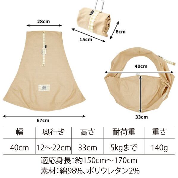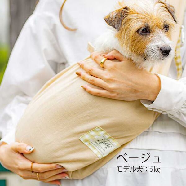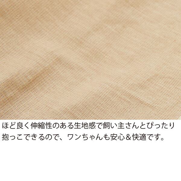 ほどよく伸縮性のある生地感で、飼い主さんがピッタリ抱っこできるので、ワンちゃんも安心&快適です。