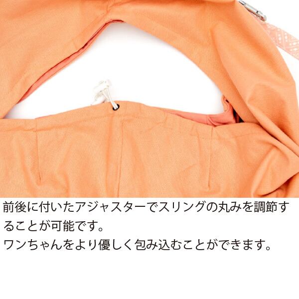 前後についたアジャスターでスリングの丸みを調節することが可能。ワンちゃんをより優しく包み込むことができます。
