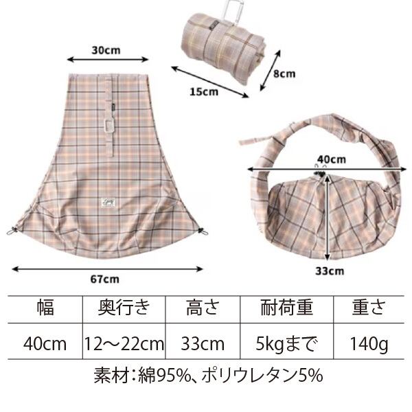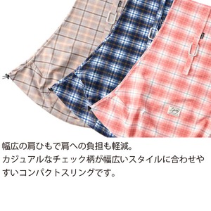 幅広の肩紐で肩への負担も軽減!カジュアルなチェック柄が幅広いスタイルに合わせやすい、コンパクトスリングです。