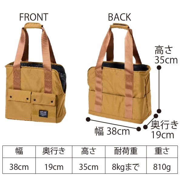型崩れしにくいフォルムでワンちゃんも飼い主さんも安心、安全なトートバッグ型のキャリーです。