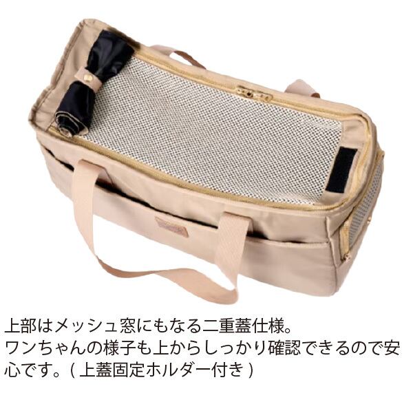 上部はメッシュ蓋との二重蓋仕様。ワンちゃんの様子を上からも確認できるので安心!(上蓋固定ホルダー付き)