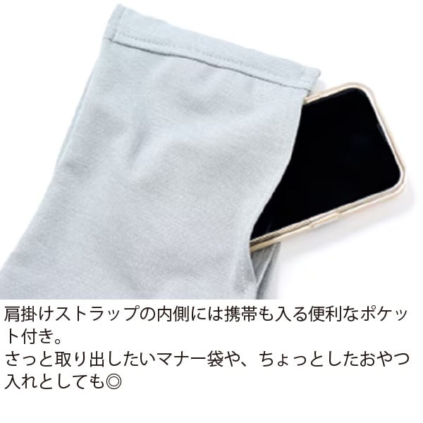 肩掛けストラップの内側には、携帯も入る便利なポケット付き。