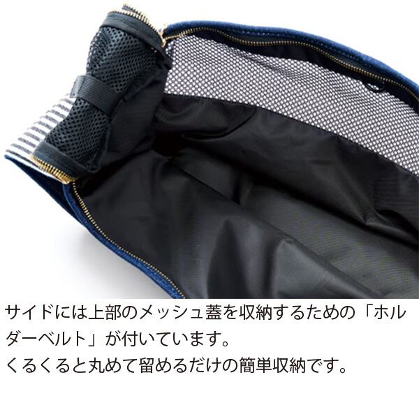 横部分には上部のメッシュ蓋を収納するための「ホルダーベルト」が付いています。クルクルと丸めて止めるだけの簡単収納♪