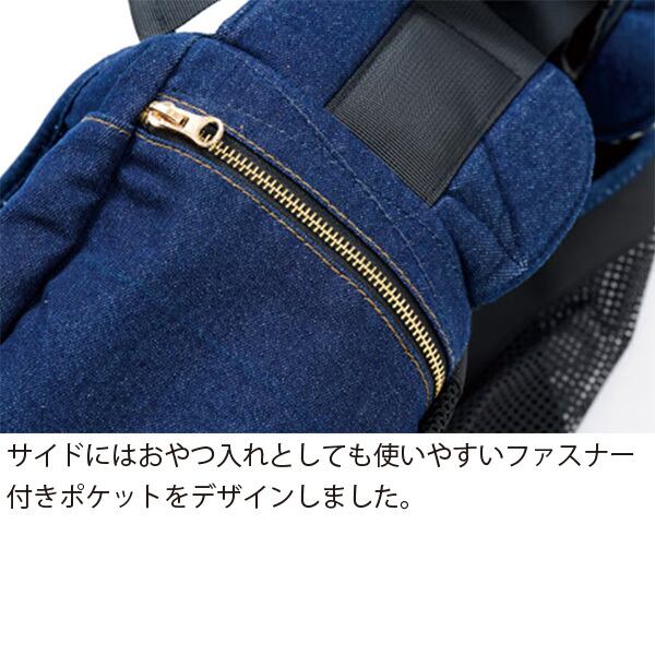 サイドにはおやつ入れとしても使いやすいファスナー付きポケットをデザイン。
