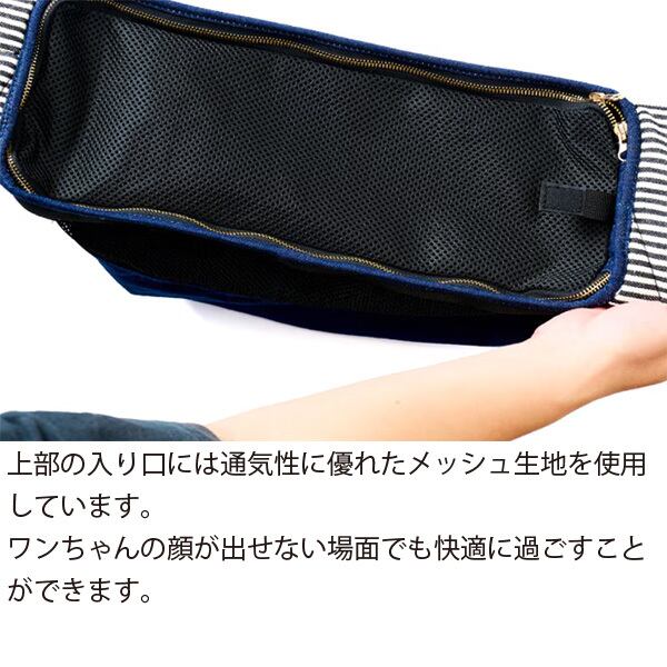 上部の入り口には通気性に優れたメッシュ生地を使用しています。お顔が出せない場面でも快適に。