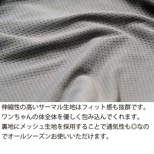 伸縮性の高いサーマル生地は、フィット感も抜群。ワンちゃんの体全体を優しく包み込んでくれます。