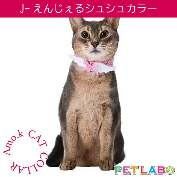 【メール便発送可能です】Amo.k(アモワークス)猫用首輪・J-えんじぇるシュシュカラー 首輪 胴輪 ハーネス お散歩 お出かけ お洒落 おしゃれ かわいい