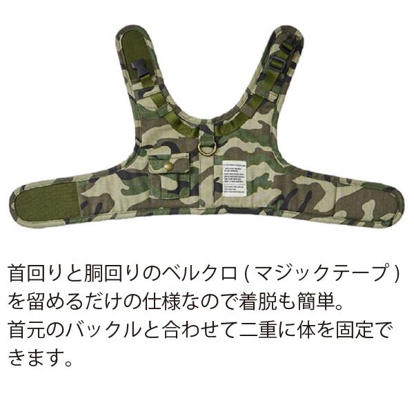 LIFE LIKE(ライフライク) ミルアウトドアカモフラウェアハーネス(Mサイズ) 犬用 胴輪 散歩 カモフラ ミリタリー ミルスペック 高級感 オリジナル織ネーム