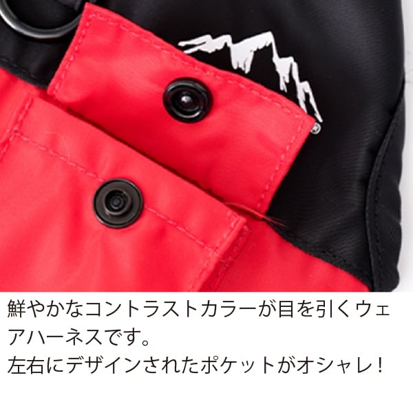 鮮やかなコントラストカラーが目を引くウェアハーネスです。左右にデザインされたポケットがオシャレです。