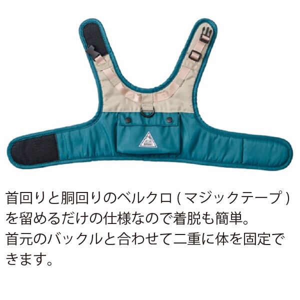 首回りと胴回りのベルクロ(マジックテープ)を留めるだけの仕様なので着脱も簡単。