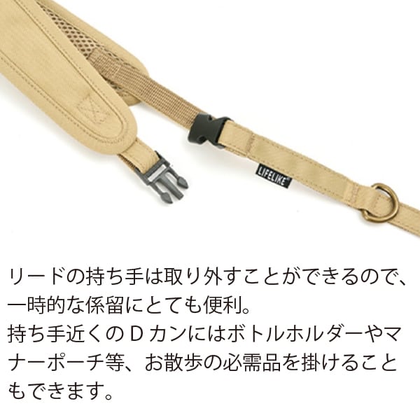 首元にはすり抜け防止用のバックルストラップ付き。元気なワンちゃんにも安心してお使いいただけます。