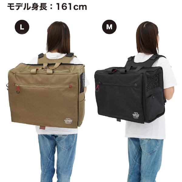 移動中もキャリーの中で伏せができる横型バックパック。