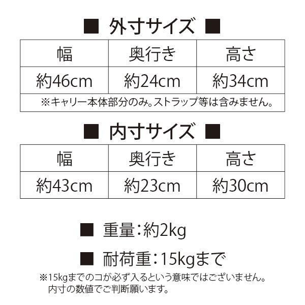 ※15kgまでのコが必ず入るという意味ではございません。バッグのサイズと併せてご考慮ください。