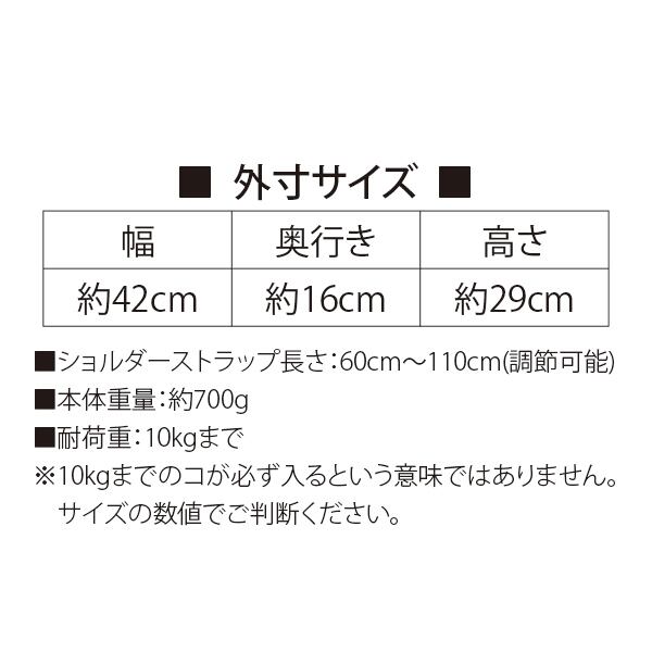 ※10kgまでのコが必ず入るという意味ではございません。バッグのサイズと併せてご考慮ください。
