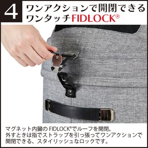 外すときは指でストラップを引っ張り、ワンアクションで開閉できるスタイリッシュなマグネット内蔵ロックのFIDLOCKを採用しました。