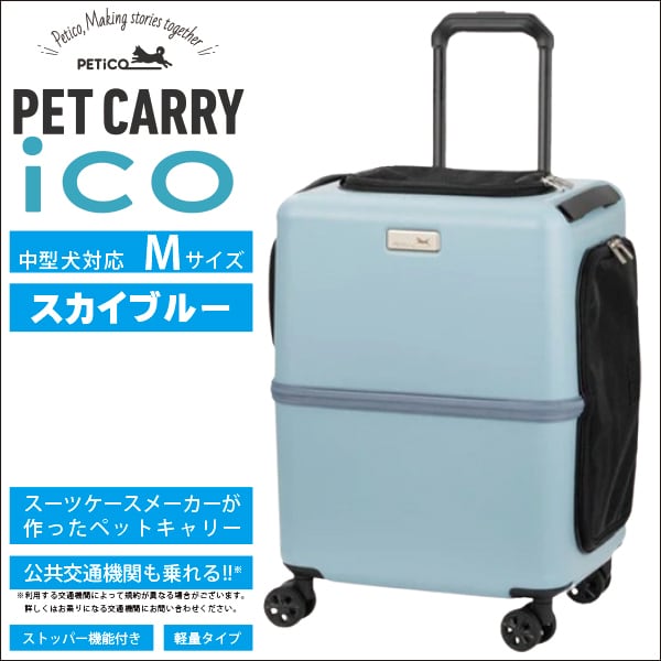 ご購入特典付き ペットキャリー PETico(ペチコ)・Mサイズ(スカイブルー) 3001-M 1年保証 犬 ネコ 小型犬 中型犬 カート キャリー バッグ スーツケース