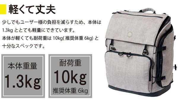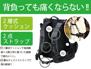 2層式クッションで負担軽減。人間工学に基づいた曲線で疲れにくく、背負っても痛くならない!!