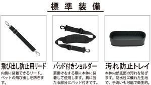 飛び出し防止リード付き。サイドポケットにはペットボトルを2本収納できます。