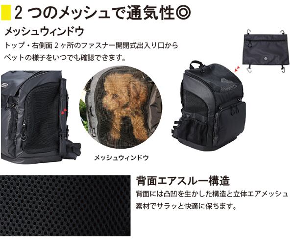 登山用リュックを参考に開発された、背負う・肩掛け・前抱きの3WAY仕様の猫・小型犬用の移動用キャリーバッグです。