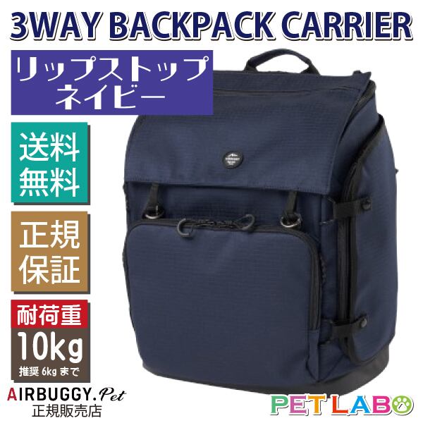 ご購入特典付き!! AIRBUGGY 3ウェイバックパックキャリー(リップストップネイビー) エアバギーフォーペット Air Buggy for pet キャリー カート お散歩 おでかけ 旅行