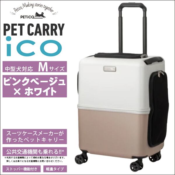 ご購入特典付き ペットキャリー PETico(ペチコ)・Mサイズ(ピンクベージュ×ホワイト) 3001-M 1年保証 犬 ネコ 小型犬 中型犬 カート キャリー バッグ スーツケース