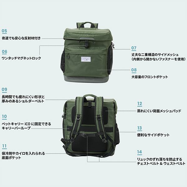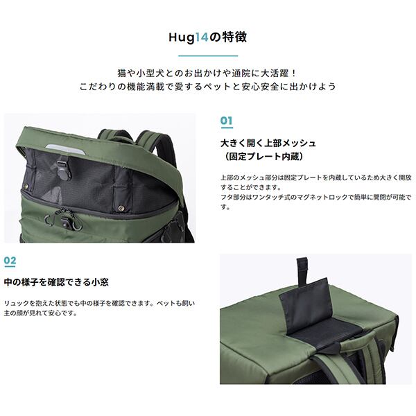 通気性抜群の設計に長時間でも疲れにくいショルダーベルト、中のペットの様子を確認できる小窓など、ペットも飼い主も安心、快適におでかけできるよう、細部までこだわり抜いたペットリュックです。