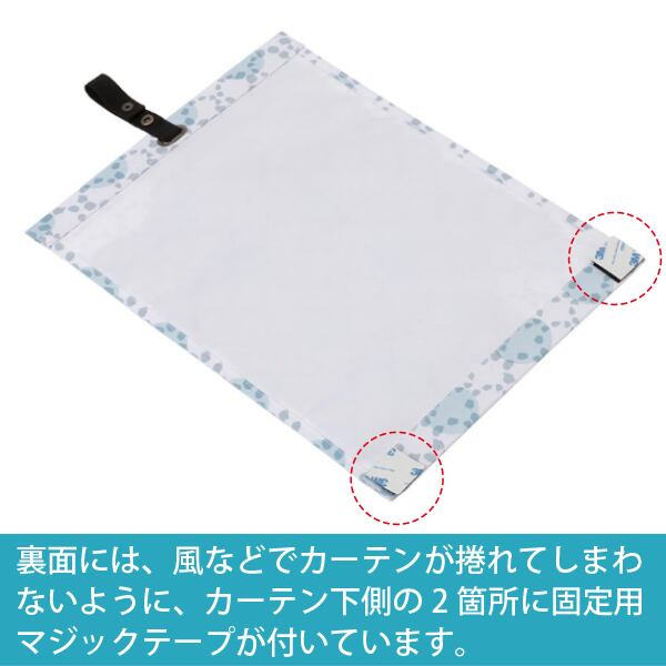 ■風などでカーテンが捲れてしまわないように、カーテン下側の2箇所に固定用マジックテープが付いています。