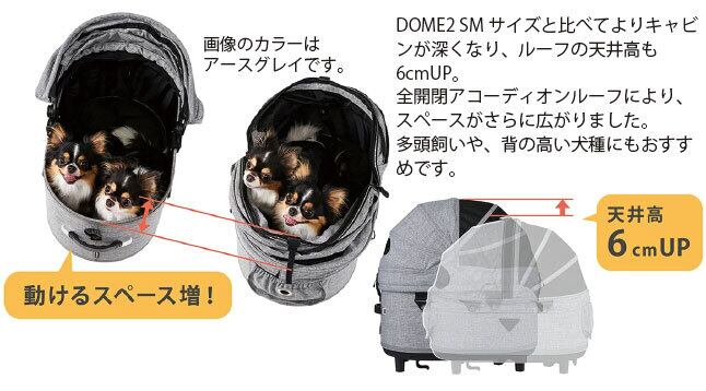 DOME3・レギュラーサイズは、DOME2・SMサイズと比べてよりキャビンが深くなり、ルーフの天井高も6cmアップ。左右どちらからでも開閉できる全開閉アコーディオンルーフにより、スペースがさらに広がりました。