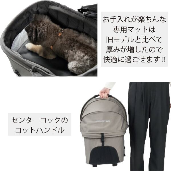簡単ワンタッチでコットも着脱でき、持ち運び便利なキャリースタイルでもお使いいただける2WAYタイプ。